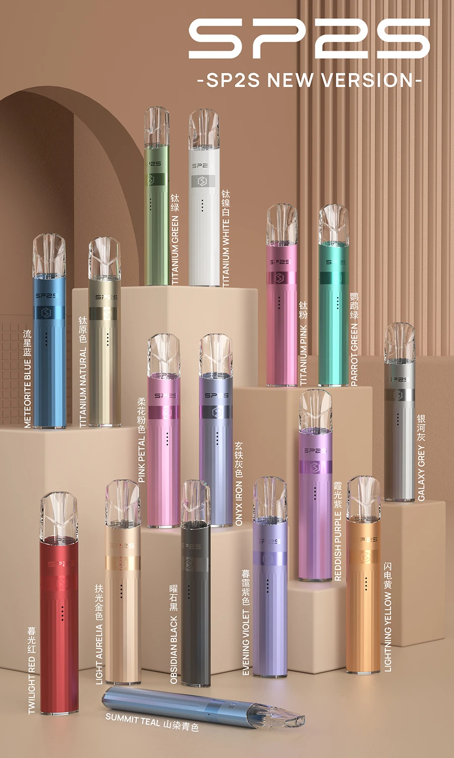SP2S 鈦色主機是思博瑞系列中兼顧外觀質感與實用功能的一次重要升級。這款主機在經典設計上,採用了更具現代感的電鍍工藝,並提供了多達16種色彩選擇,滿足使用者對個性化的追求。更重要的是,SP2S 鈦色主機保持了優異的通用性,能完美匹配市面上廣泛流通的一代通用煙彈,為使用者節省了尋找專用耗材的成本與麻煩。
